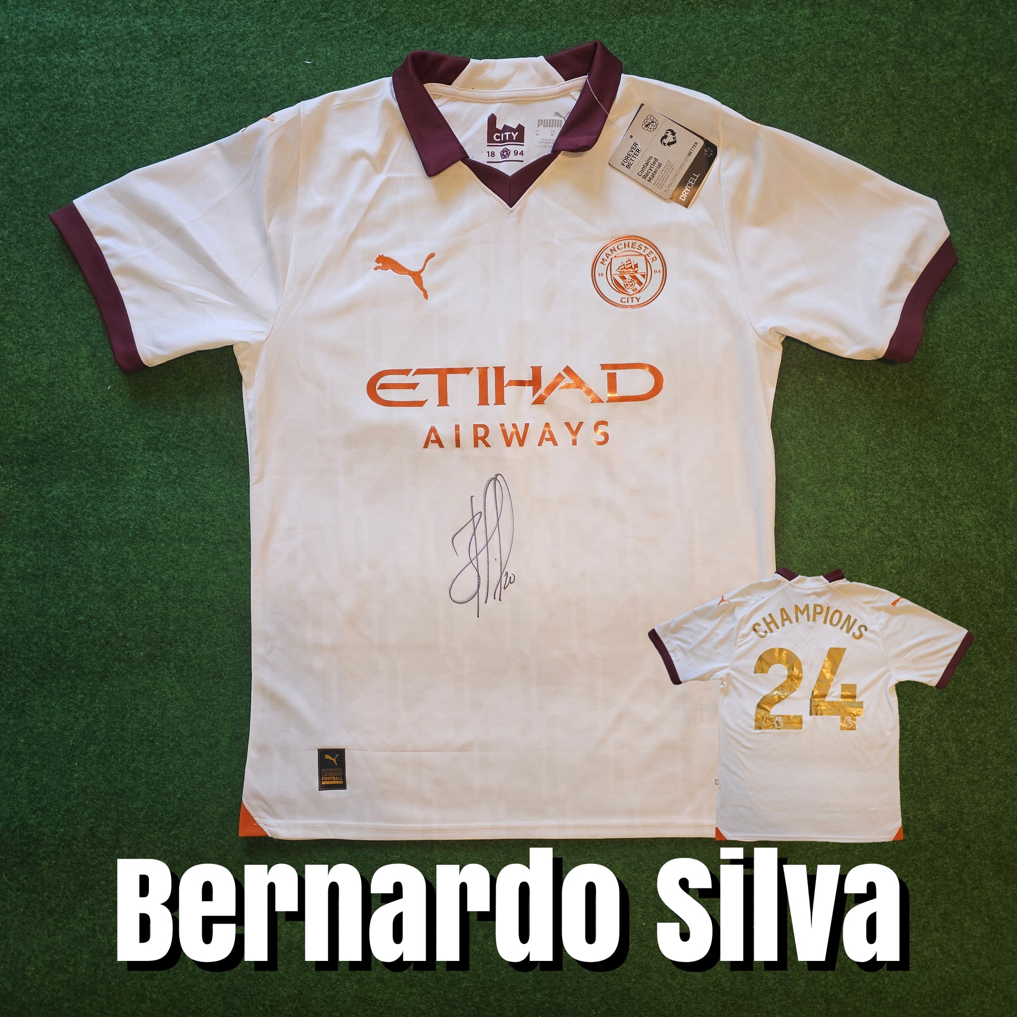 Bernardo Silva Signed 2023/24 Manchester City 'CHAMPIONS' Away Shirt